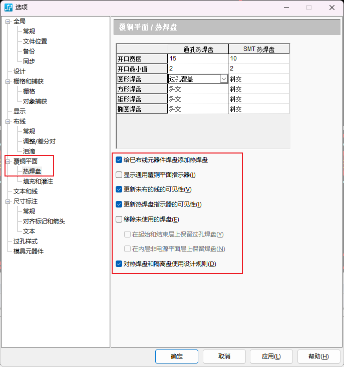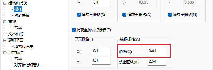 铜皮的线宽要大于铺铜栅格。