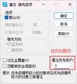 Pads中铜皮默认优先级为0,数字越大,优先级越低。