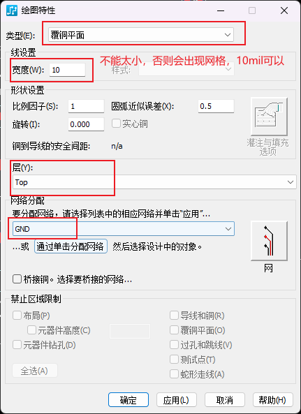 栅格越小,铜皮越精确。