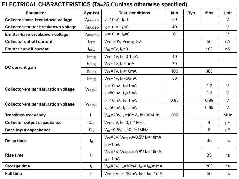 三极管作为开关时应考虑参数: