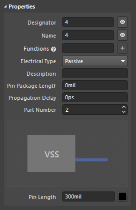管脚长度通常 300 mil,根据实际情况修改。