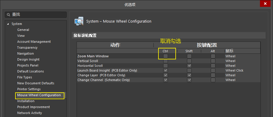 原理图设置,放大缩小不用按住ctrl,直接滚轮即可。