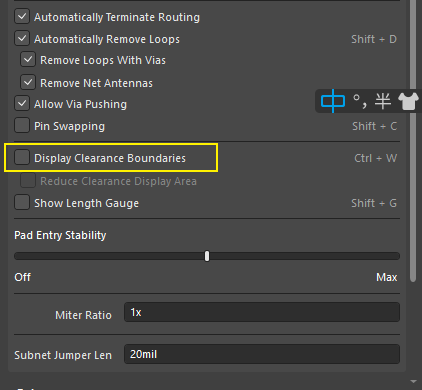 设置中开启推挤布线时,元器件和走线会有白色的边框