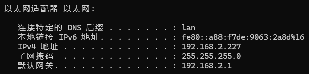 1、首先 ipconfig 查看自己的网关
