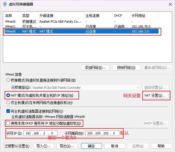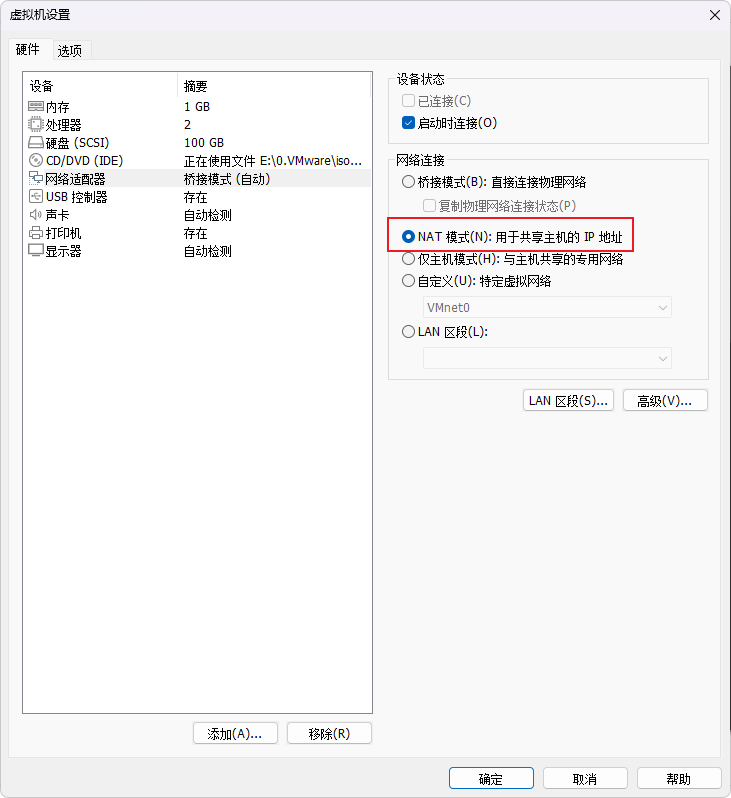 (1)虚拟机设置为 NAT 模式