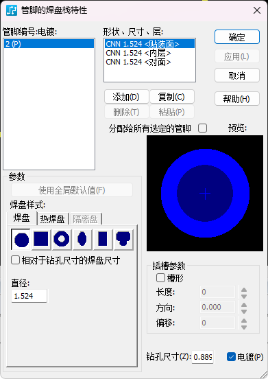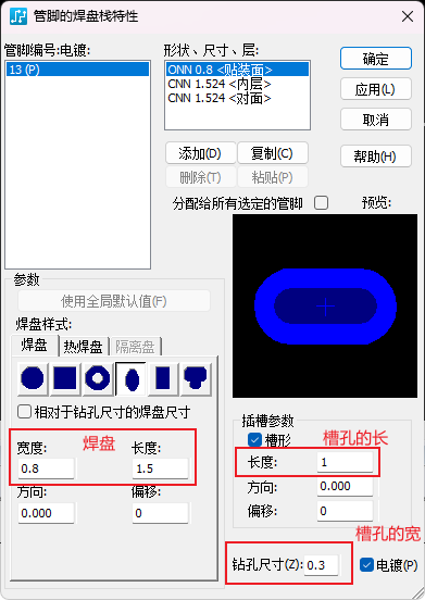 焊盘和钻孔大小一样,并勾选非金属内壁。