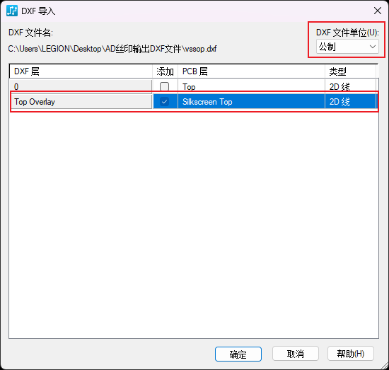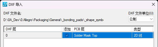 导入焊盘的DXF,和上面的操作一样,只不过层选择为TOP。