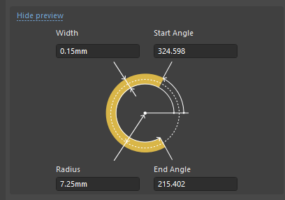 Pads中的圆弧仅支持整数,比如215输入215.401小数,会仅保留整数部分。