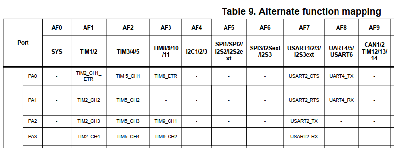 对于F1:开启了外设后,它有默认的引脚。引脚初始化后需手动重映射。