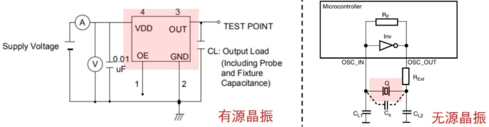有源晶振上电就能输出振荡信号,无源晶振外部电路。