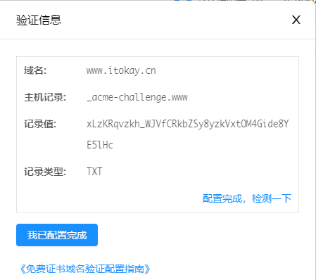51ssl 的那个域名验证得等10分钟,然后它自动颁发证书。